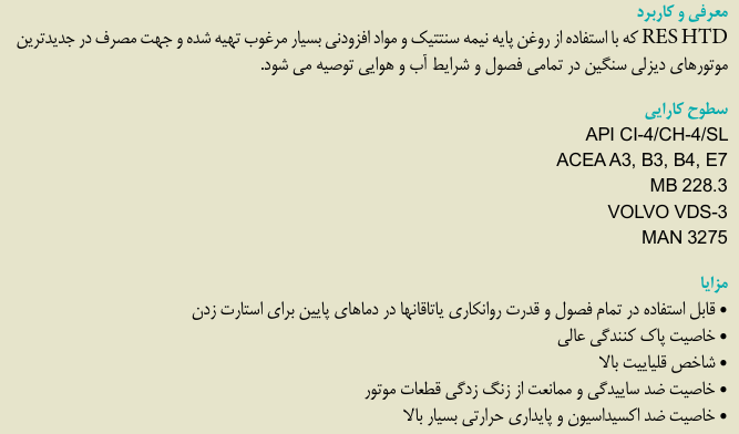 روغن موتور دیزلی/بنزینی RES HTDres2021-11-21T21:44:03+03:30 بستهبندی: این محصول در بشکههای ۲۰۸ لیتری و ظروف ۲۰ لیتری موجود میباشد.