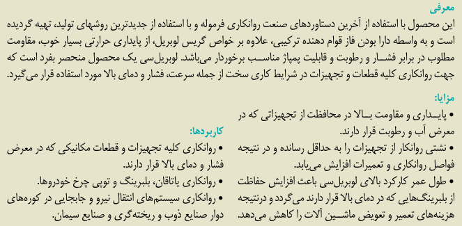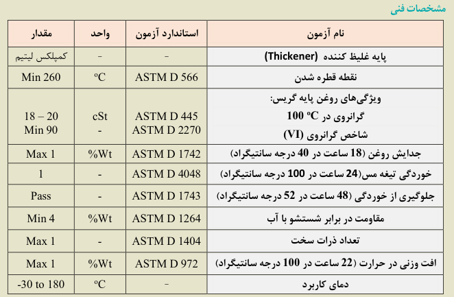 گریس لیتیم کمپلکس RES Lubril Cres2021-11-21T22:08:27+03:30 بسته بندی: ظروف ۱۰ و ۳۵ پوندی و بشکه ۱۸۰ کیلوگرمی